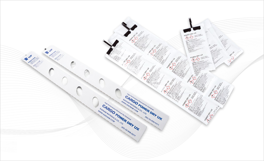 "CARGO POWER DRY UX"는 염화칼슘의 강력한 흡습성과 보습성이 뛰어난 천연 다공질 재료를 적절히 배합하여 물리적, 화학적 기능을 병용하여 제조된 초강력 흡습제로서, 경제성이 뛰어난 컨테이너 전용 흡습제이다. 육상・해상・항공수송에서 컨테이너 내부의 습기로 인한 제품의 손상을 방지하기 위하여 특수 제작된 제품으로서 흡습 후에는 젤리 상태로 변하기 때문에 물기 누출의 염려가 없다. 특히 POLE 외형이 컨테이너의 요철 부위에 들어갈 수 있도록 제작되어 있어 화물 적재 시 전혀 문제가 없다.